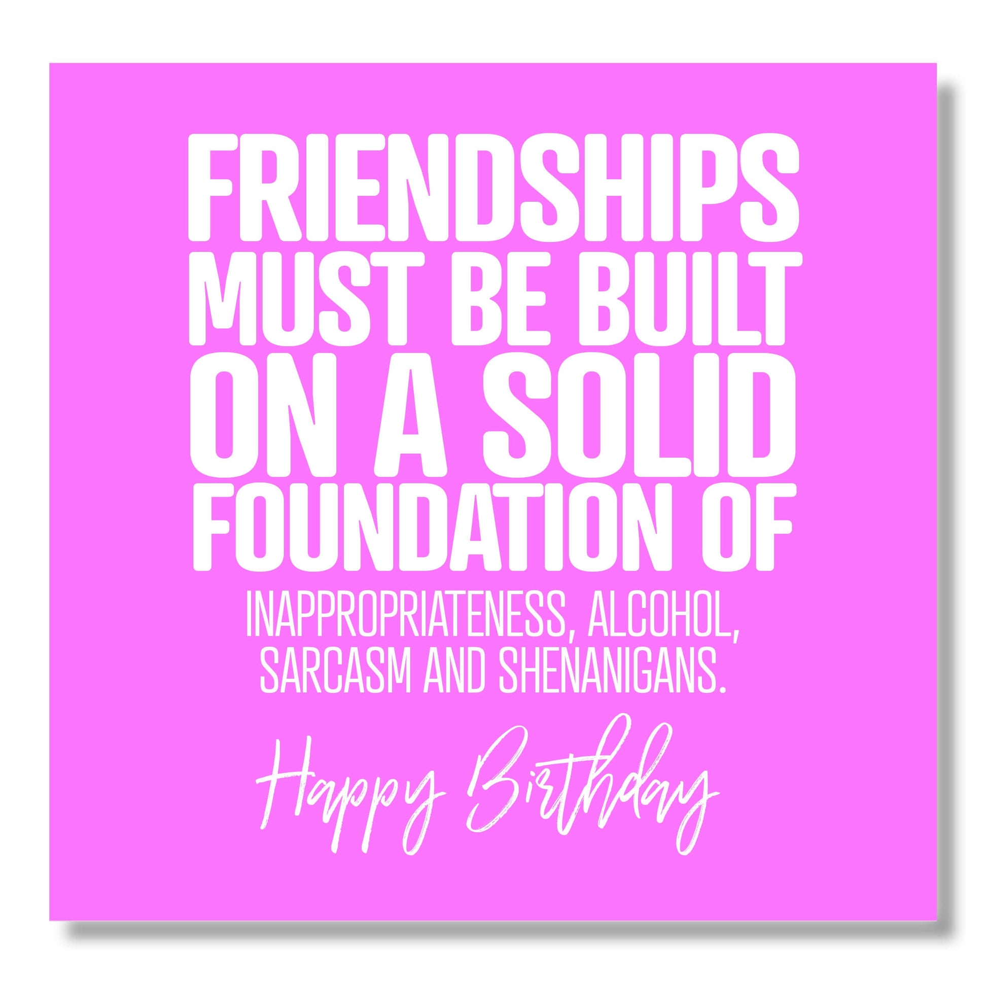 This is the best card to send your friend, sister or mum it is sure to make them laugh out loud - Friend Birthday Card Female. Funny Birthday Cards for Women, Birthday Card, Greeting Cards by Punk Cards. Punkcards - Friendships must be built on a solid foundation of Alcohol, Sarcasm, Inappropriateness and Shenanigans.