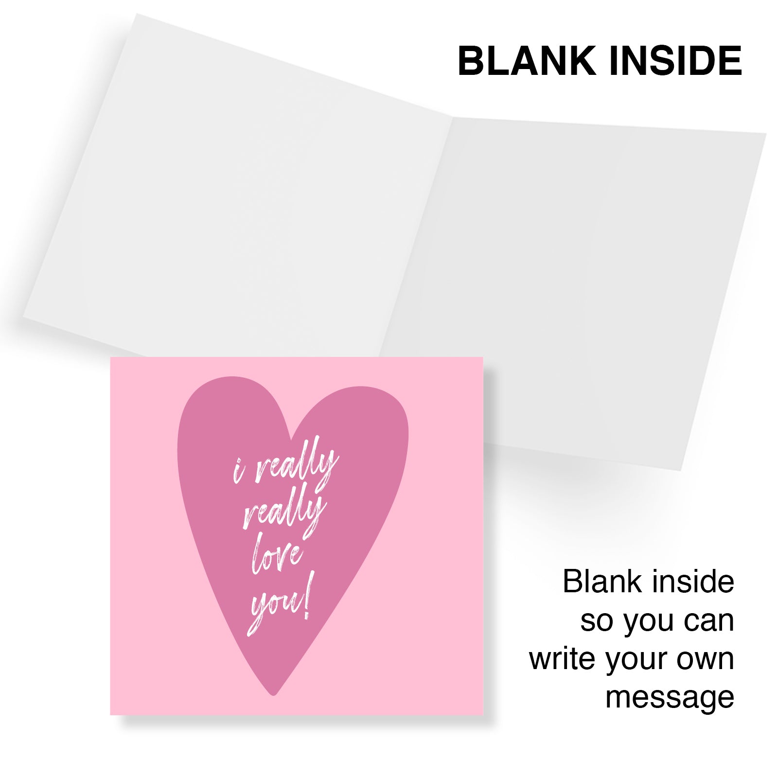 Express your deepest feelings with this charming Valentine's Day card, perfect for your wife, husband, girlfriend, or boyfriend. Featuring a large heart design and the sweet message 'I really, really love you!' on a soft pink background, this card is a beautiful way to show your love and appreciation to that special someone in your life.