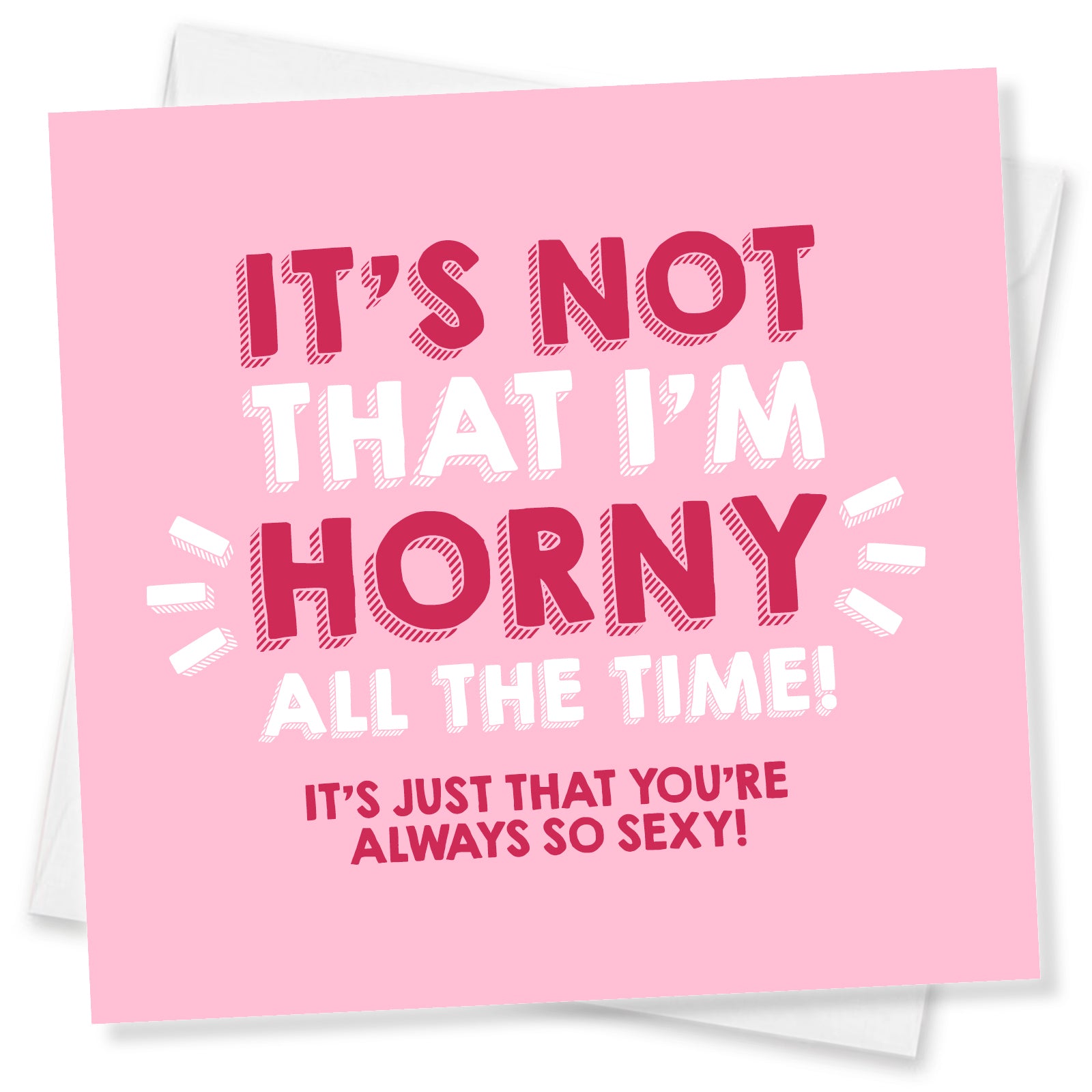Spice up your Valentine's Day with this playful and cheeky card featuring the hilarious message, 'It's Not That I'm Horny All The Time, It's Just That You're Always So Sexy!' Perfect for your girlfriend, boyfriend, wife, or husband, this card brings humour and fun to your romantic celebration. Set against a flirty pink background, it’s guaranteed to make them laugh and feel extra loved!